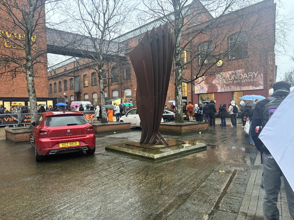 The photo is the queue – in miserable never ending rain. Luckily the rain seems to have decided to take today off, but then we’re headed for sleet and snow.