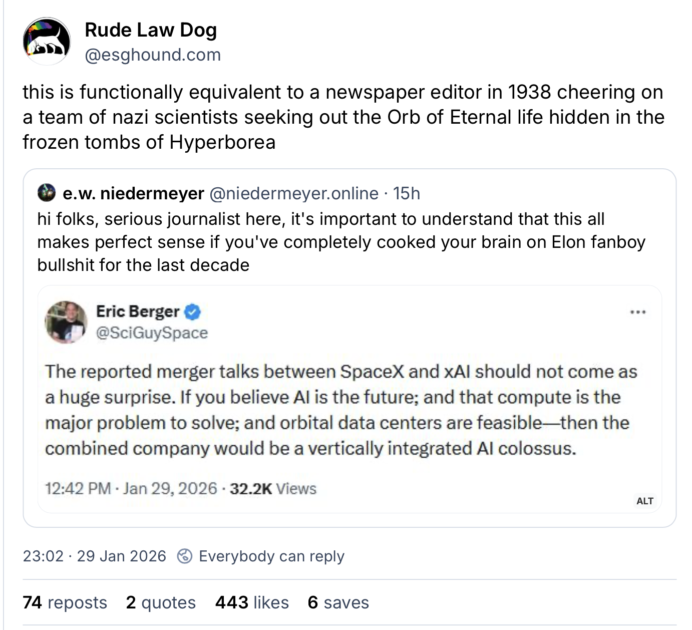 So I’m tired and don’t have time to do the screen grabs I’d normally do so instead I’m going to embed some stuff, with the caveat that that makes these things brittle. If bluesky stops working, if their profiles become hidden, if the delete their profiles, then these embeds stop working.