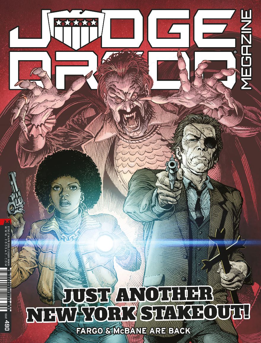 HIs, this month the Judge Dredd Megazine has an exciting interview with yours truly, as well as the start of the new Fargo and McBain strip I’m drawing and A PREVIEW OF THE FIRST FIVE PAGES OF TERRAN OMEGA!